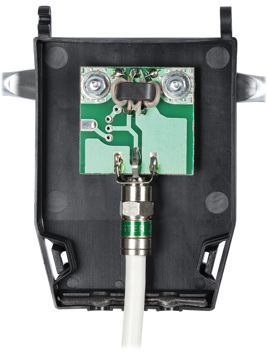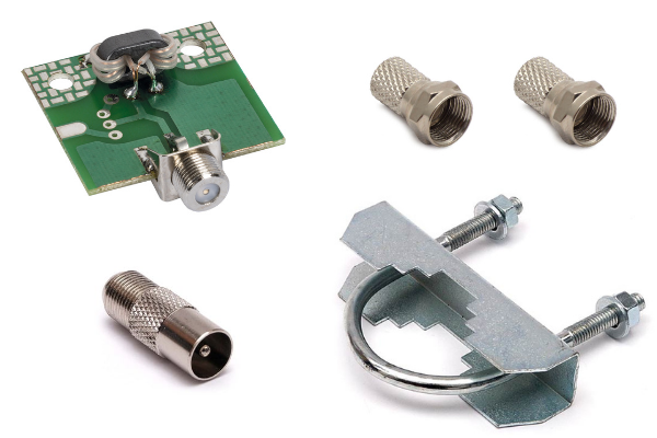 W zestawie znajduje się symetryzator, wtyk antenowy, złącza typu F oraz obejma służąca do montażu anteny do pionowej rurki.