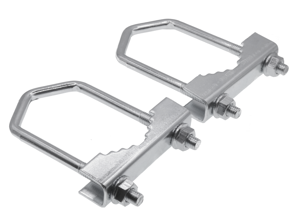 W komplecie znajdują się dwie obejmy zaciskowe duże UZ-50 M8 Luxon. Objemy służą do przytwierdzenia masztu do obejmy kominowej. Maksymalna średnica masztu nie może przekraczać 50mm.