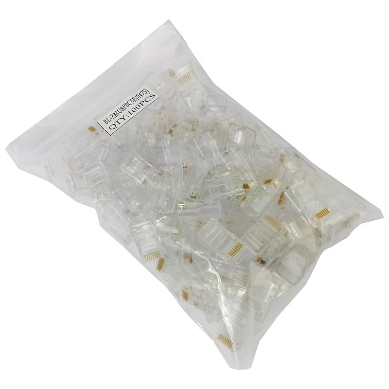 Złącze modularne 8P8C (RJ-45) przeznaczone do zakańczania nieekranowanych przewodów typu skrętka w instalacjach okablowania strukturalnego. Posiada 8 miejsc na styki i 8 styków.