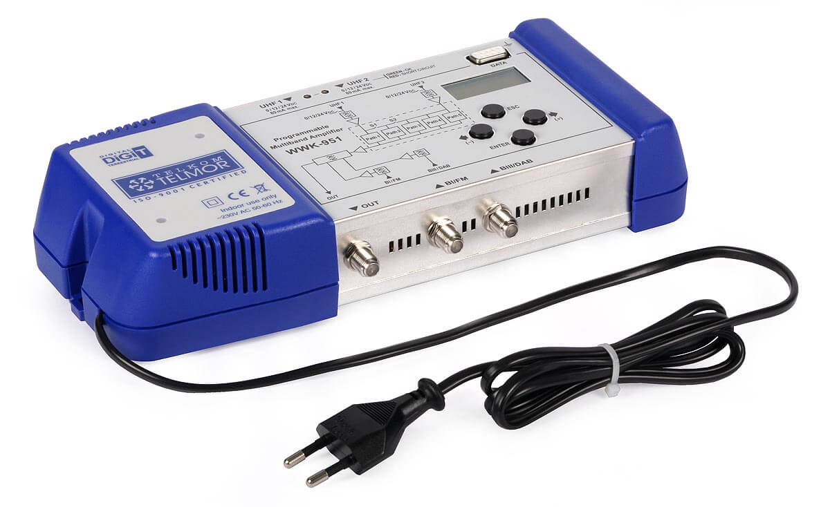 Programowany wzmacniacz wielozakresowy WWK-951 przeznaczony jest dla instalacji antenowych do odbioru naziemnych programów TV analogowych oraz cyfrowych (DVB-T2) w domkach jednorodzinnych, rezydencjach, hotelach, pensjonatach, domach wypoczynkowych, szkołach, szpitalach, itp.